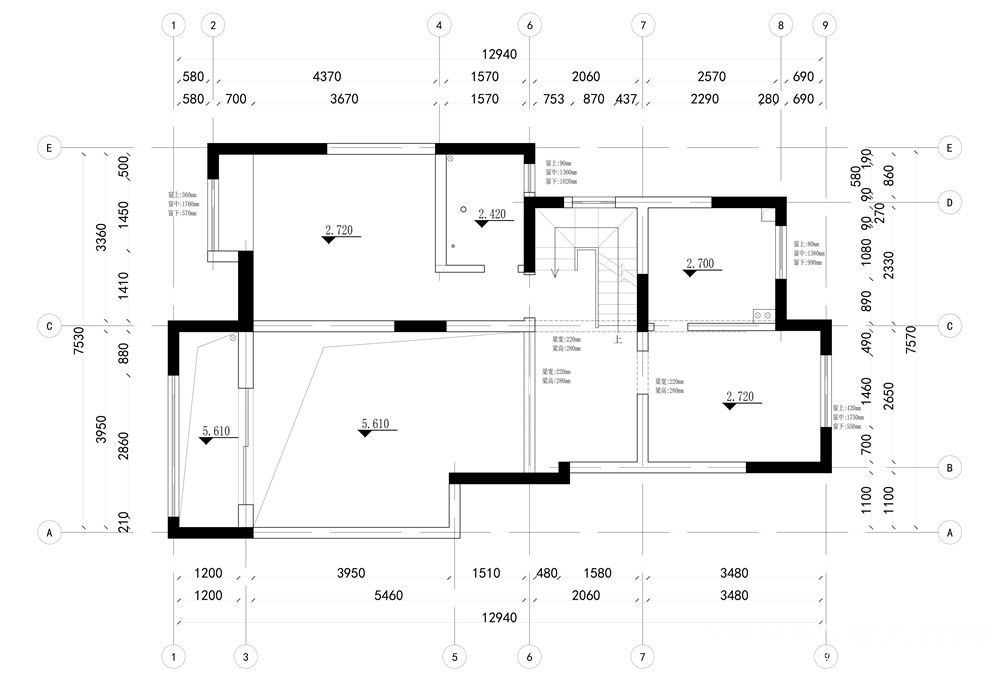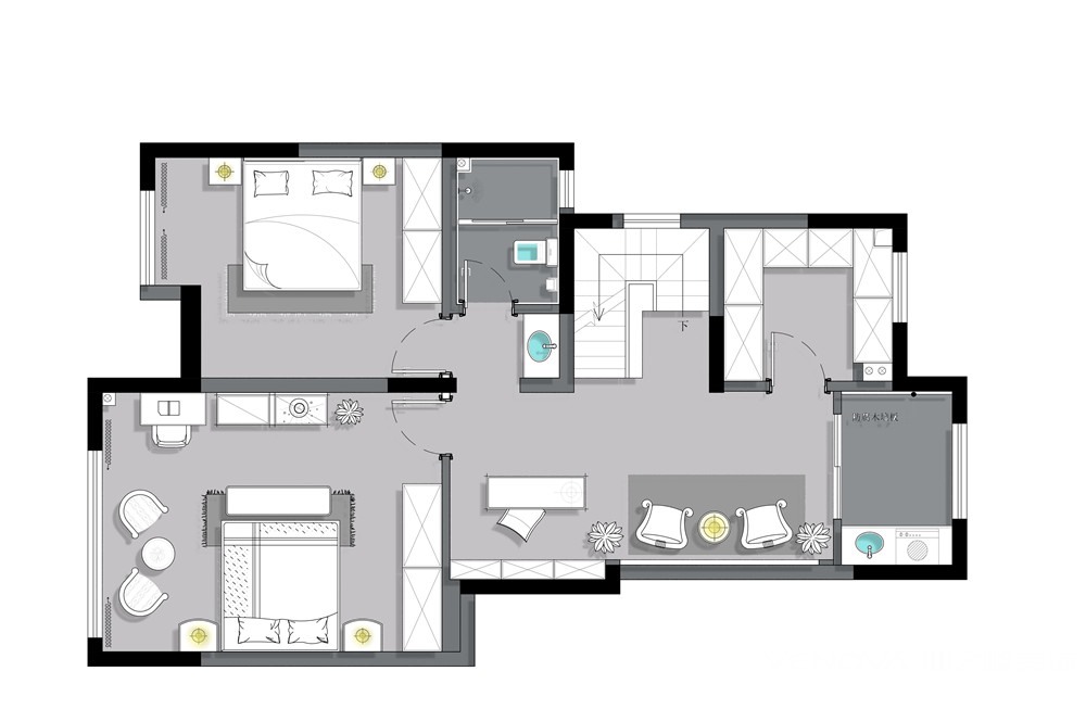 2. 二层将客厅上方搭建后形成的空间做主卧,两层各做三分离式的卫生间,增加卫生间的体验感,并将北边两个空间分别做独立衣帽间,与洗衣房.增加生活空间功能性.