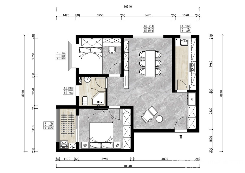 客户需求:取消传统客厅,改客厅为多功能区域,可当餐桌、可亲子活动,可会客,餐厅改休闲区域,摆放单人沙发。