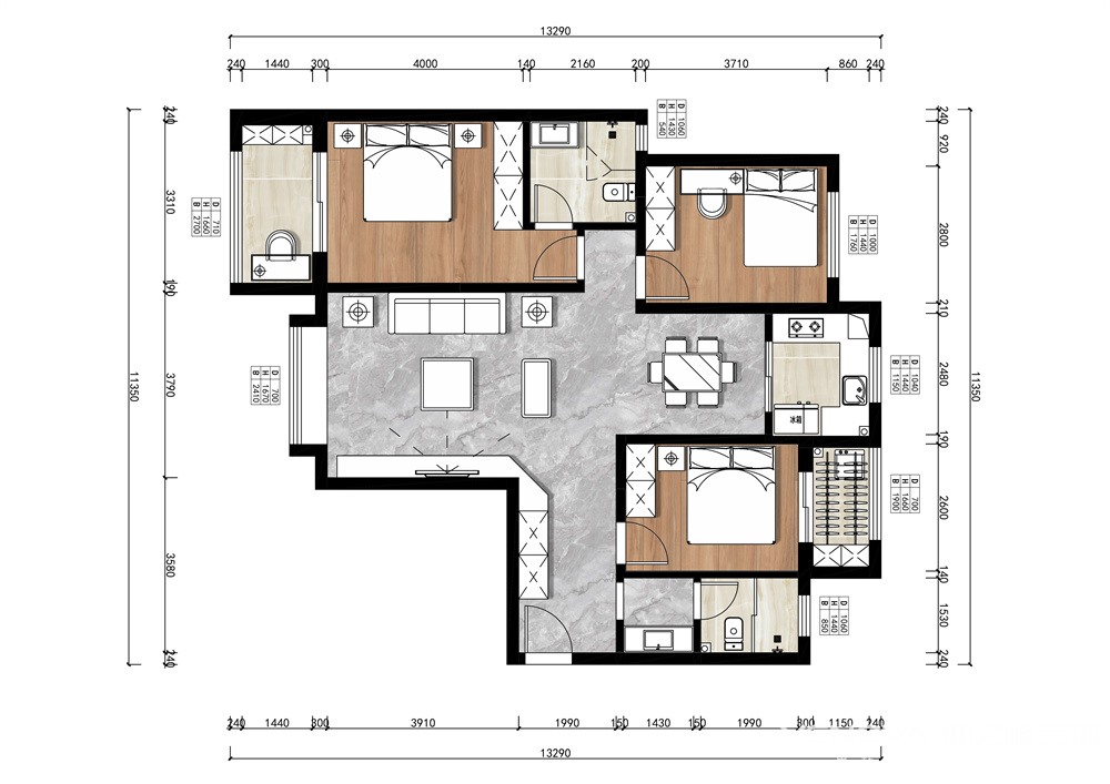 131㎡三居轻奢风格拉克雷公馆