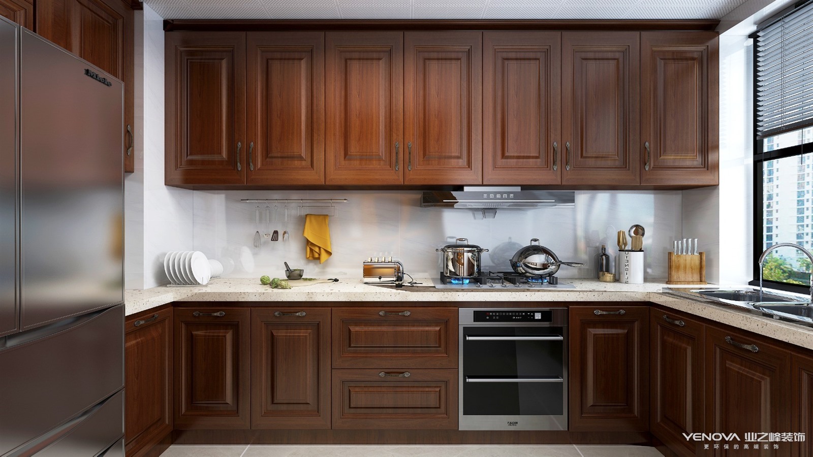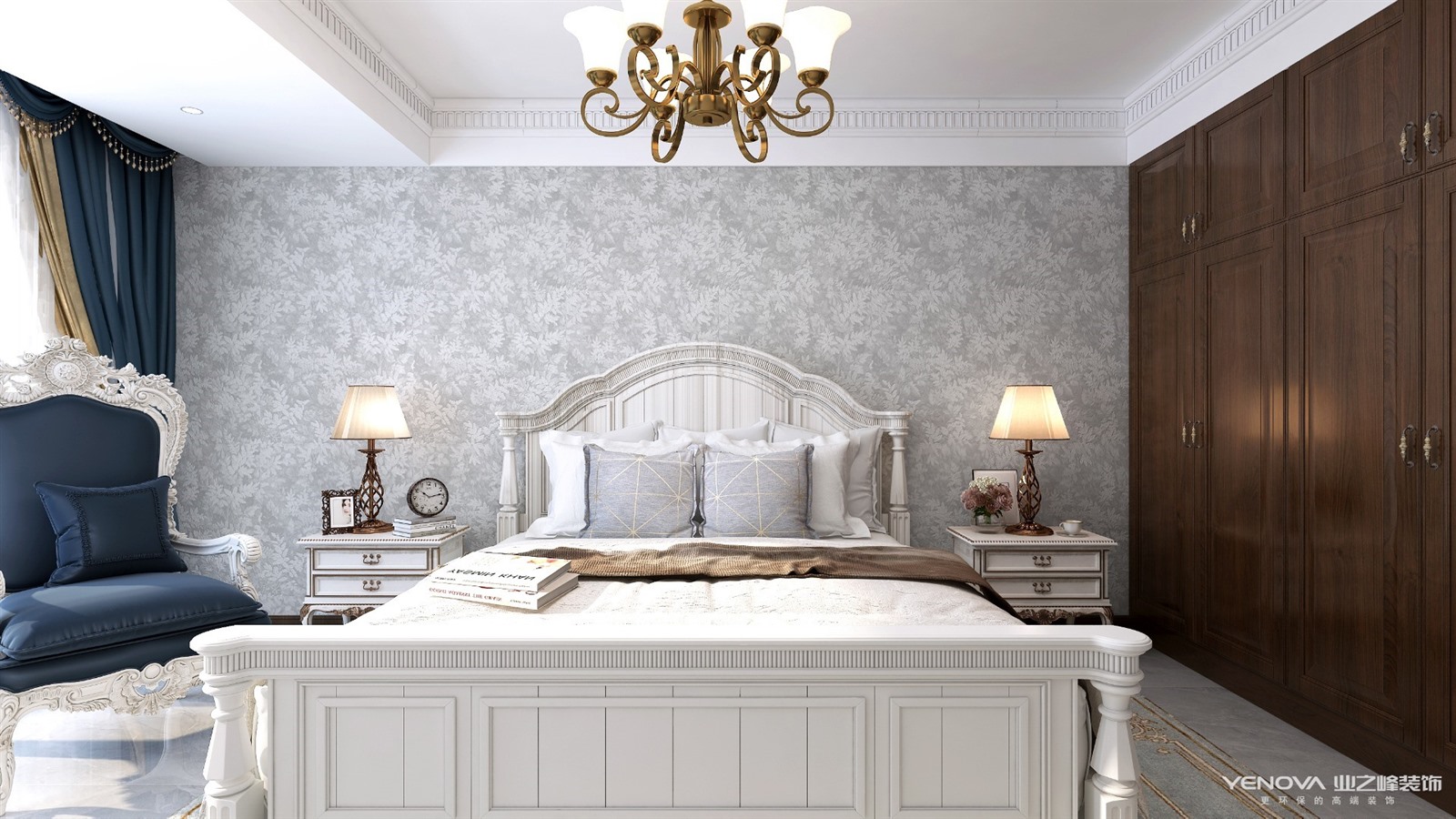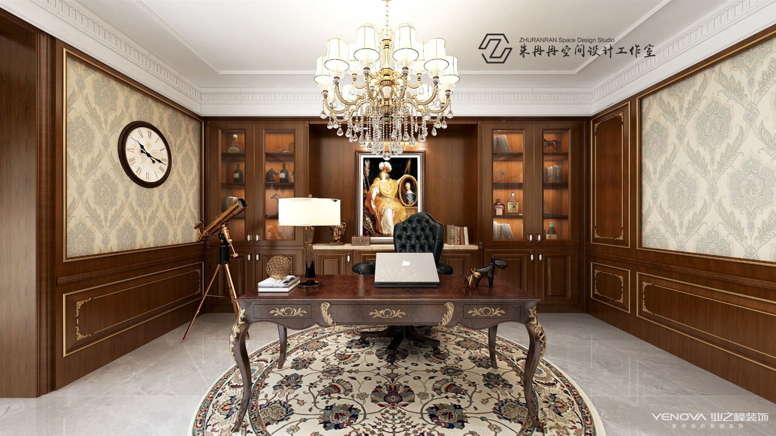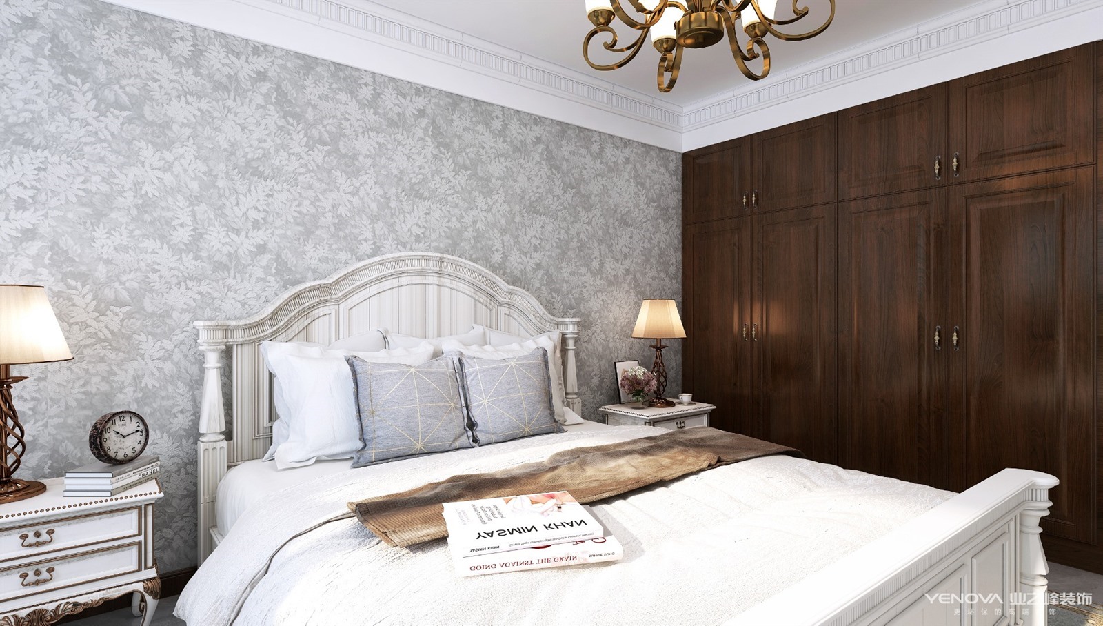 整个空间以美式的部分元素体现,属于自然风格的一支,倡导"回归自然",在室内环境中力求表现悠闲、舒畅、自然的生活情趣。本案运用了一些做旧的材质,如樱桃木饰面、仿古面的石材以及家具上的一些做旧的工艺等、让整个设计给人的感觉是沉稳的、有内涵的、低调不失高贵,也在相当程度上表现出其居住者的品位、喜好。家具搭配上选用造型典雅华丽又富有细节的新古典家具,华丽高雅中透露着精致的生活品质,高贵不失典雅的同时,也适合现代生活需求。布艺则以棉、麻等天然材质为主,都选用丰富的印花图案布料调节空间氛围。饰品、绘画、布艺的搭配在各自空间中强化着意韵气质的表达。