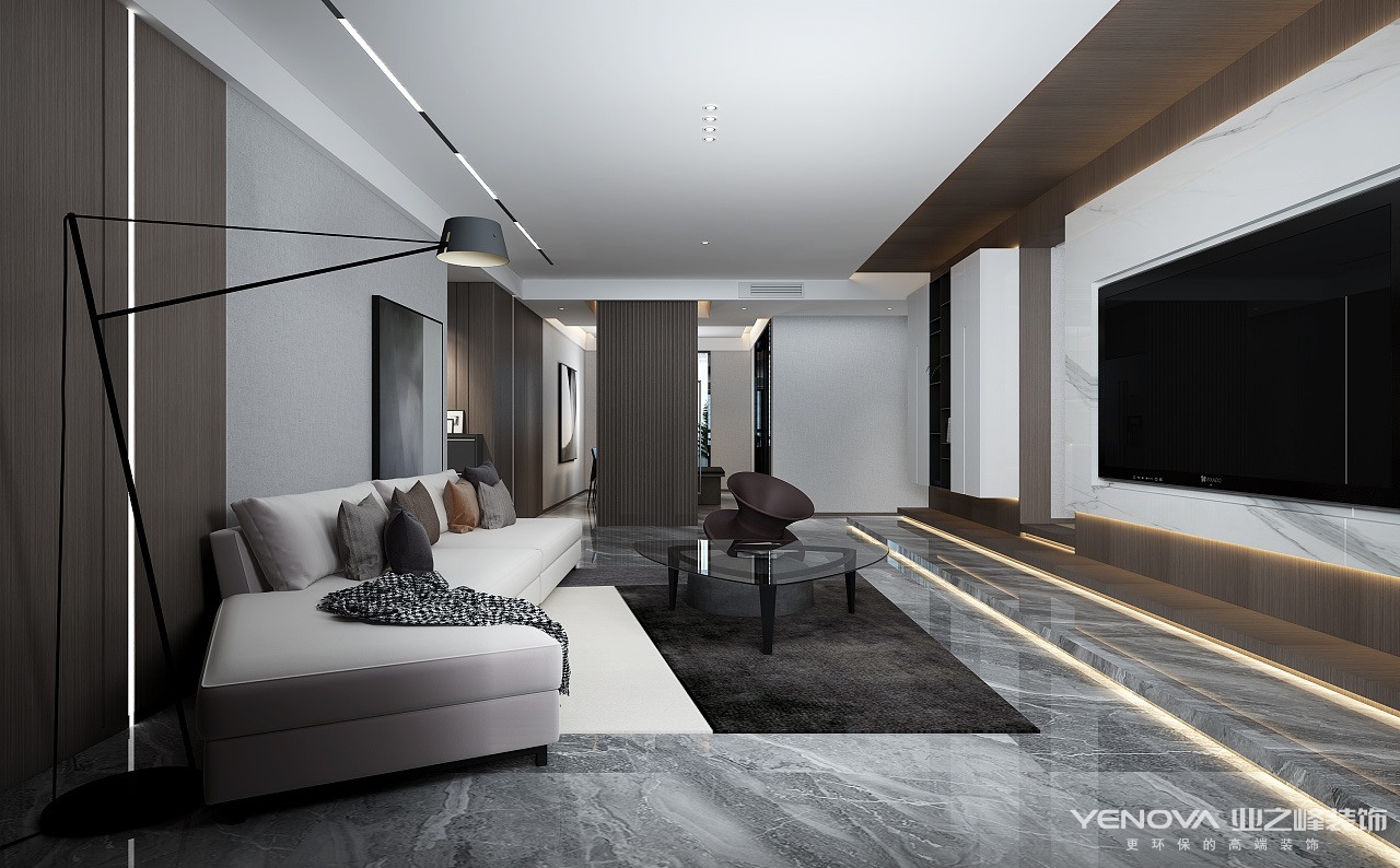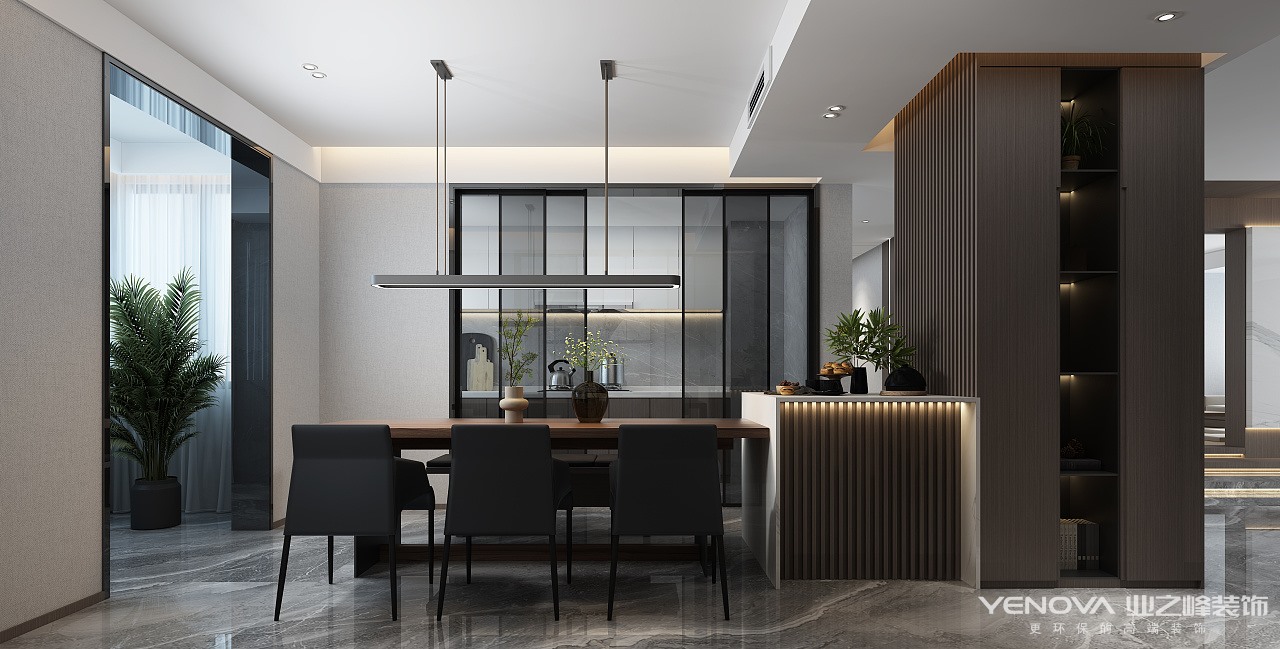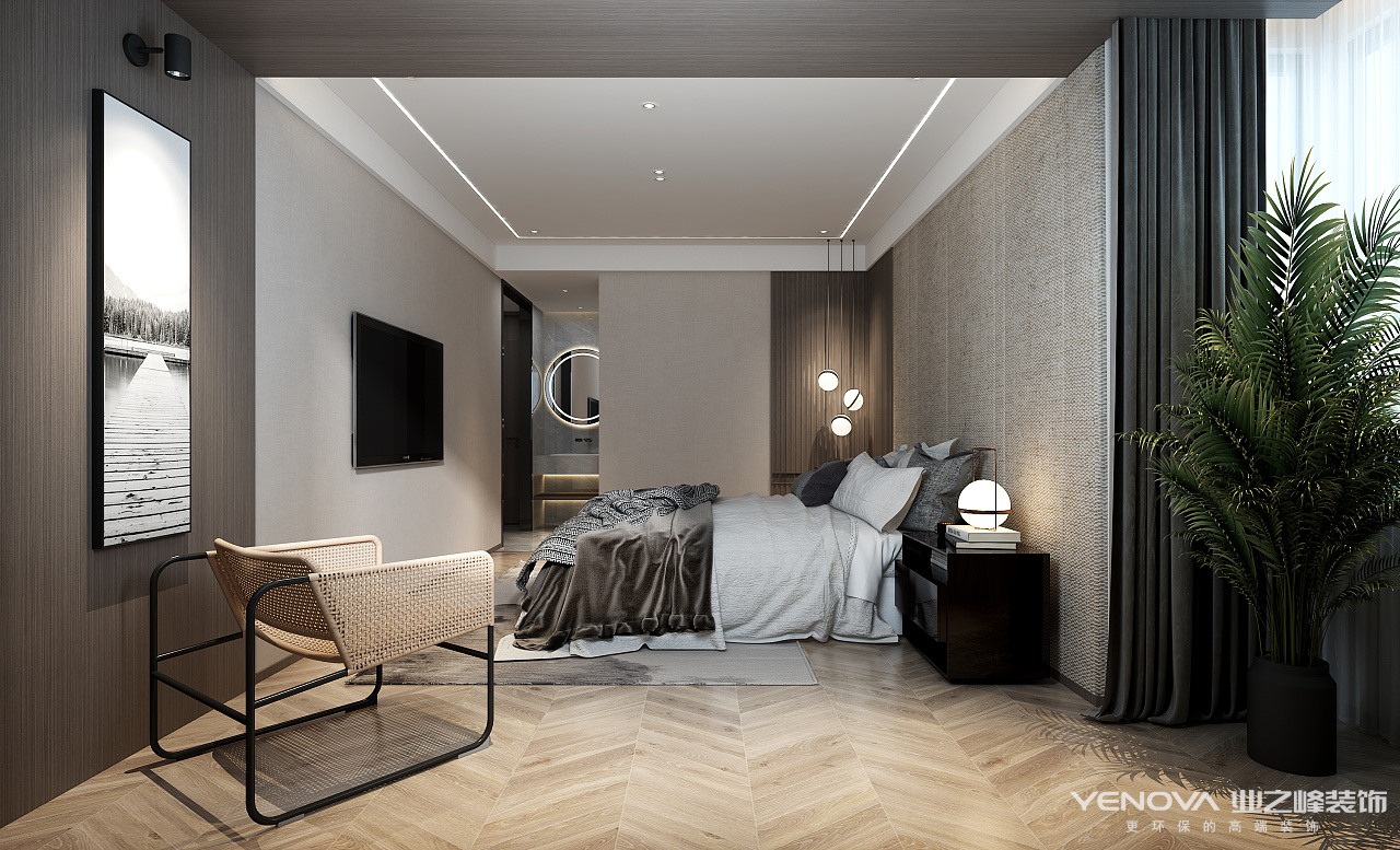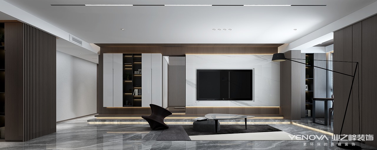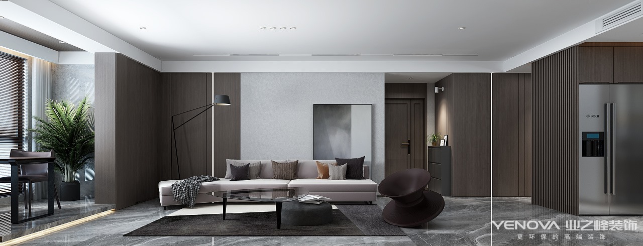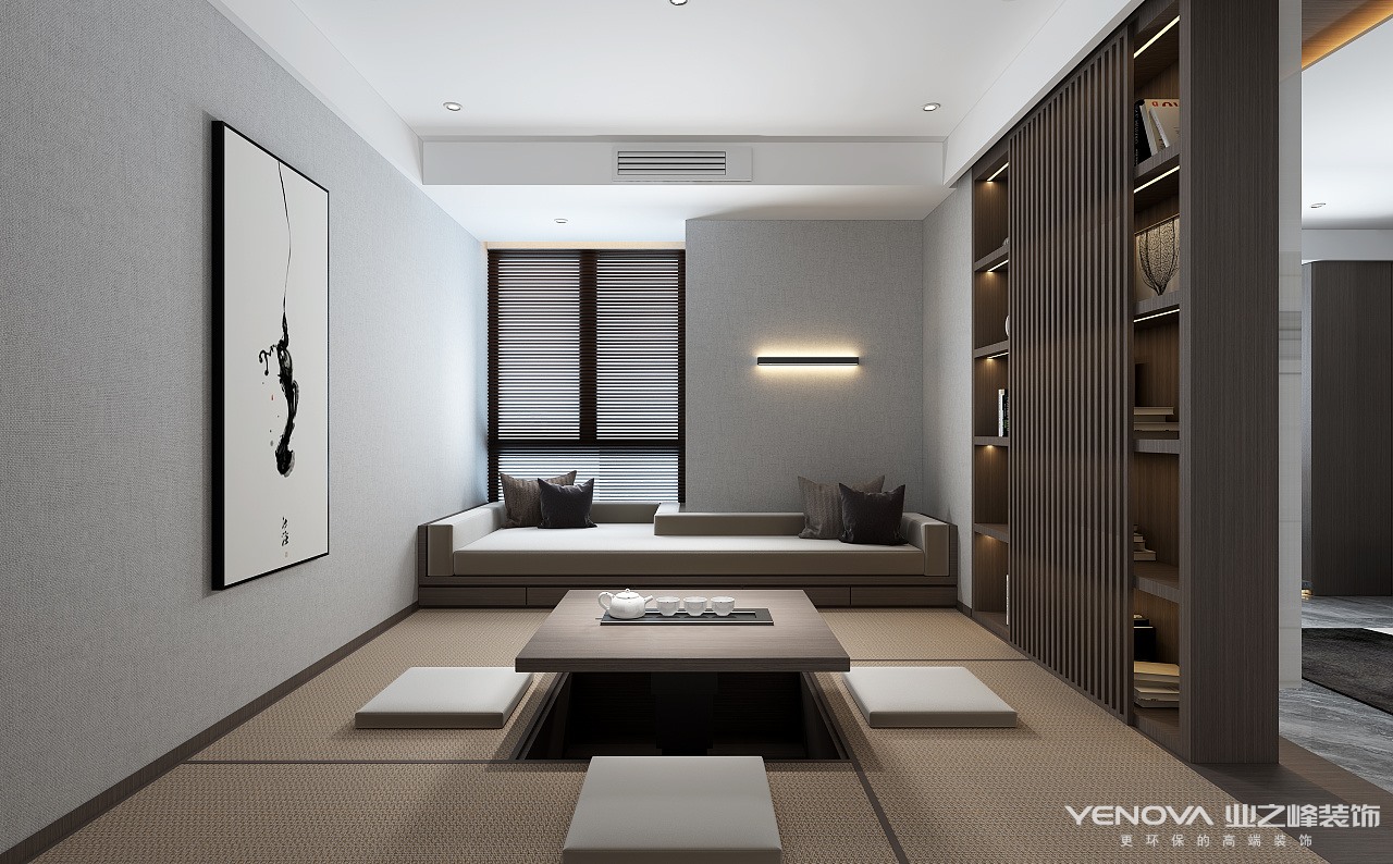而正宗的台式风格,一根线,控制天花、地面的分割,同时与立面对位。用不同材料与构成方式区分空间。