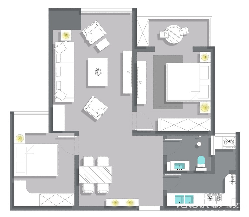 小区:曲江诸子阶 面积:89㎡ 户型:二居 风格:现代简约风格