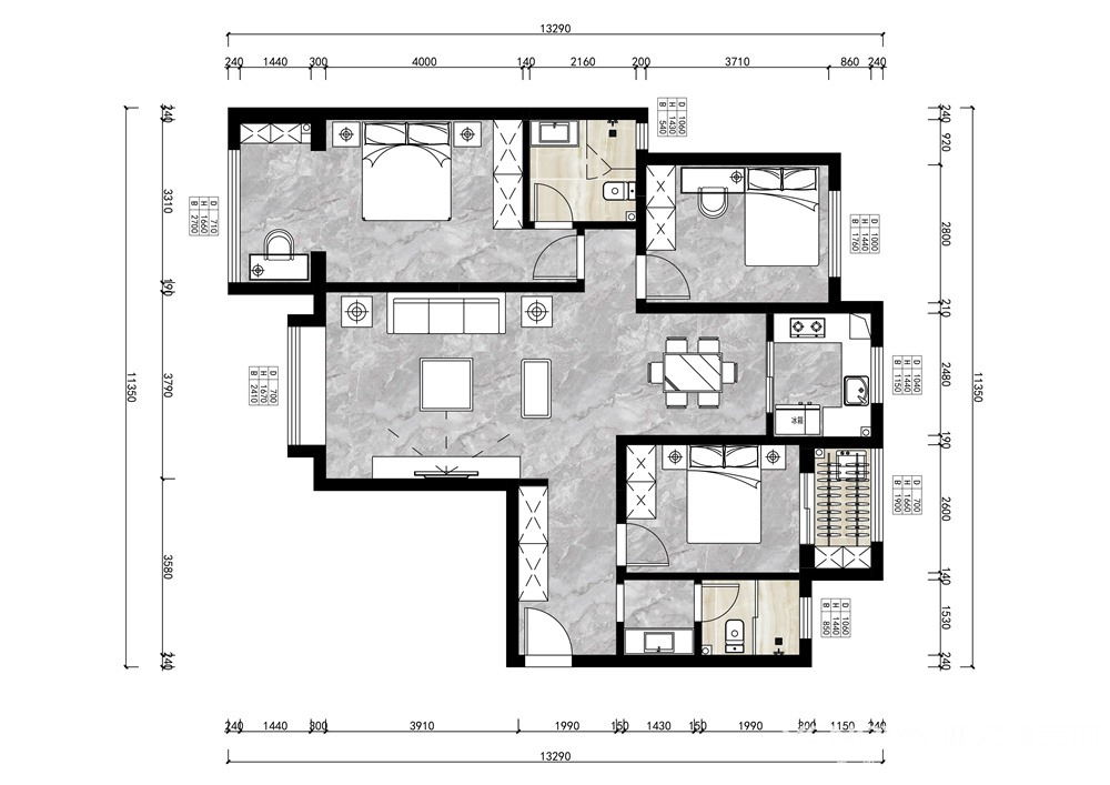 房主为一家三口,主要一间客房,父母偶尔居住,需要独立办公空间,装修风格要求简约而又不雷同。