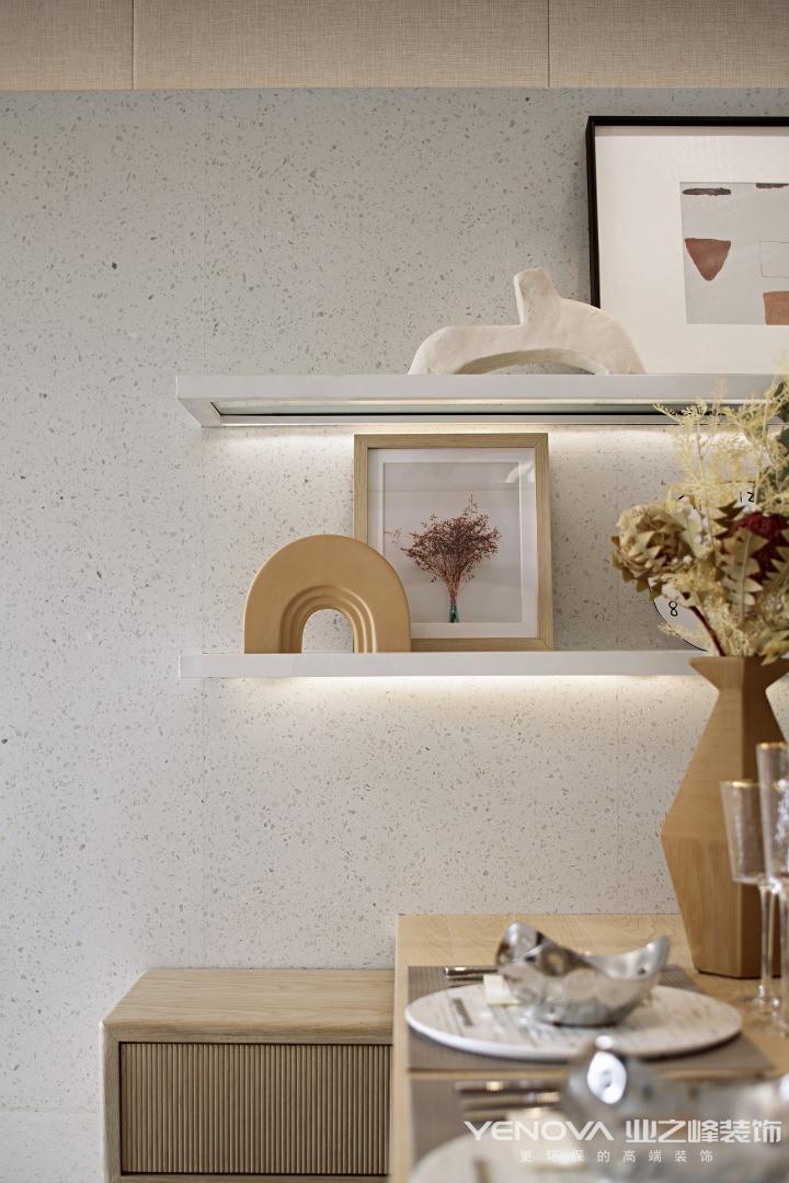 从玄关处走进客厅,映入眼帘的是阳光漫布下的明亮居室。在光线的跳跃变幻中,寻味品质与艺术的完美结合。