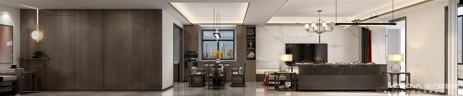 客餐厅用开放式书房结合客厅,西厨边柜结合马可波罗岩板电视造型墙,相互衔接相互呼应,视觉上更通透舒适。