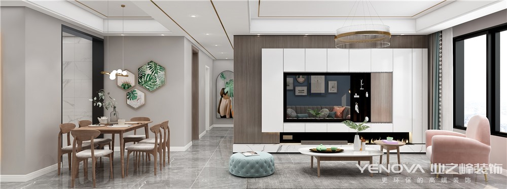 此户型为四房户型,改成了三房+书房的格局,业主倾向于:现代风格。所以全屋整体色调以灰色为主,黑色边框为点缀色,冷暖搭配无疑是最好的搭配,选用木饰面板加金属线条进行装饰营造别样精致生活。