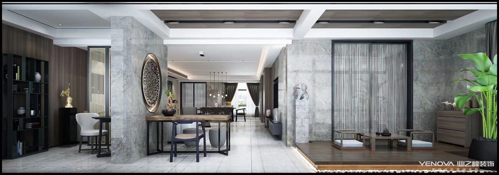 精致的软装设计与巧妙细节的设计烘托出贵气讲究的家居氛围,利用瓷砖装饰墙面,利用板材装饰顶面,设计的心思肉眼可见,使的客厅的设计感扑面而来。