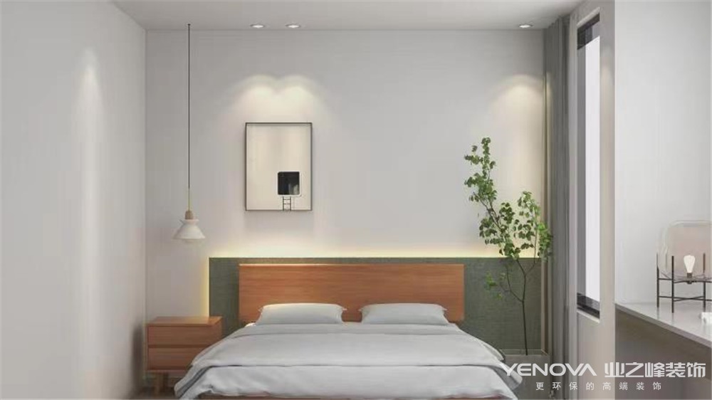 整个空间以白色为主,大白墙和无造型的的顶面设计,让整个空间显得更加明亮,并且使小户型的看起来更加宽敞。白色与原木色相互映衬互补,并且以水泥灰质感的窗帘软装相配,更添中性色彩。