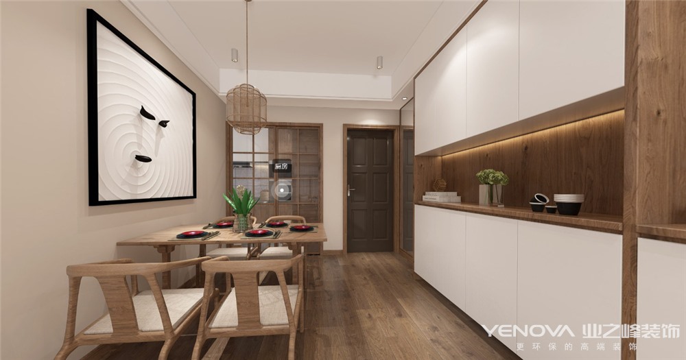此案业主钟爱日式风格,整体用色遵循少即是多的原则,以原木色白色为全屋主色调,摒弃了复杂的线条造型,以简洁透光的独特格调带给居住者沉静明亮的感觉。