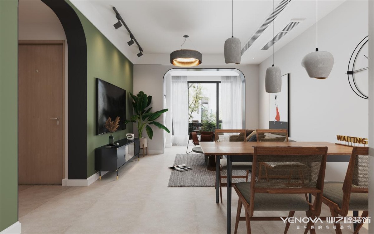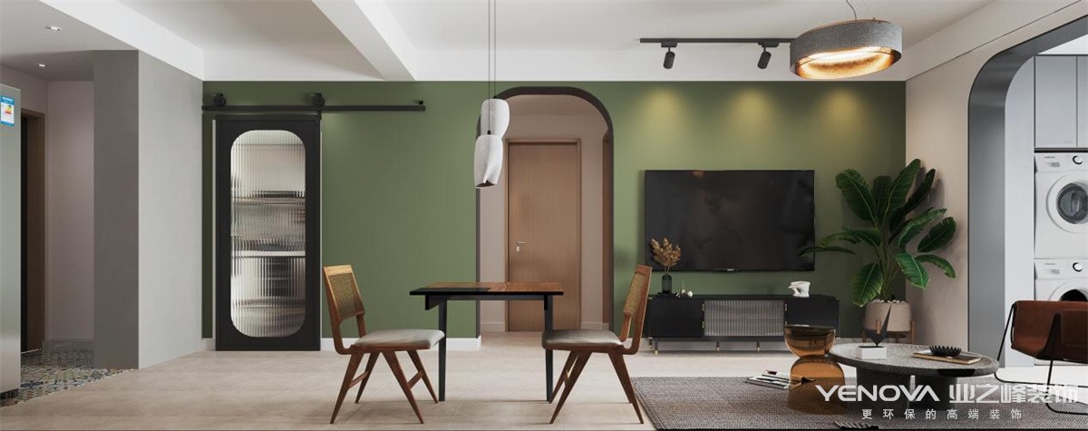 设女业主喜好精致舒缓的绿色,因此将绿色元素灵活点缀在客厅空间,营造出自然的居住氛围。细腻纤柔的编制椅传递出东方美学的抽象写意,造型气韵十足,同时又不失功能性。