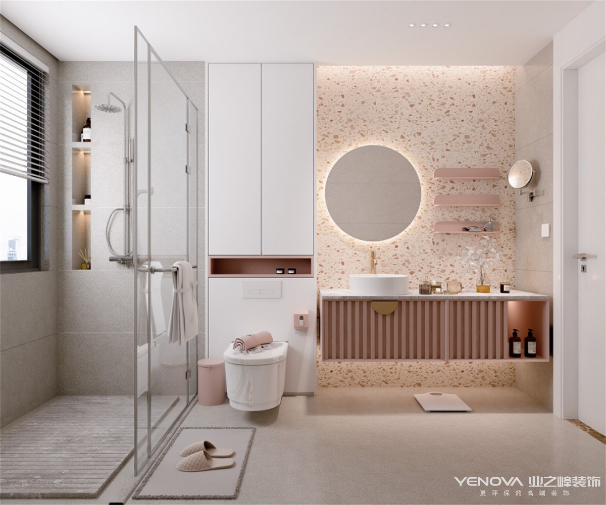 客厅设计大胆且富有创意,脏粉色和米色相撞,质感丰富又极有新意,色彩跳跃又相得益彰。
