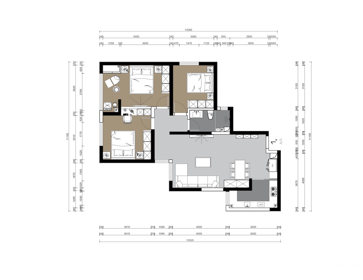 小区:西安光机所 面积:120㎡ 户型:三居 风格:现代简约风格
