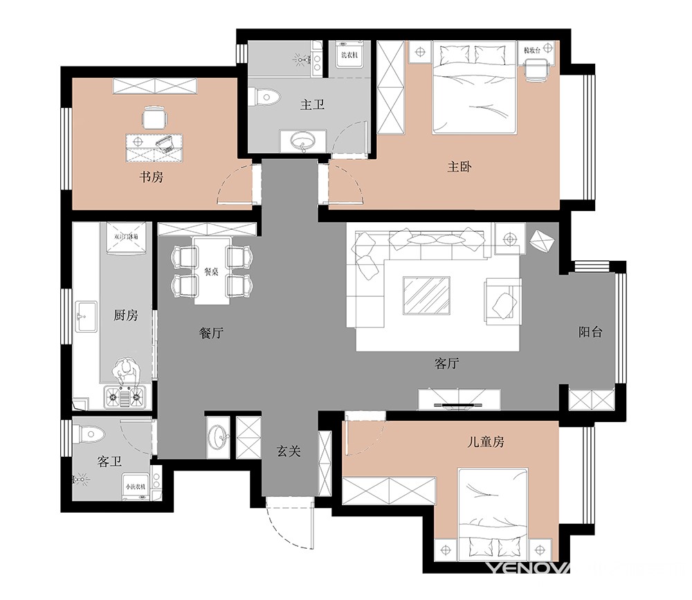小区:龙湖天宸原著 面积:125㎡ 户型:三居 风格:混搭风格