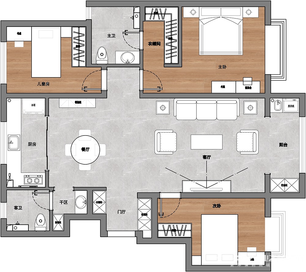 小区:鲁能泰山7号 面积:125㎡ 户型:三居 风格:现代简约风格